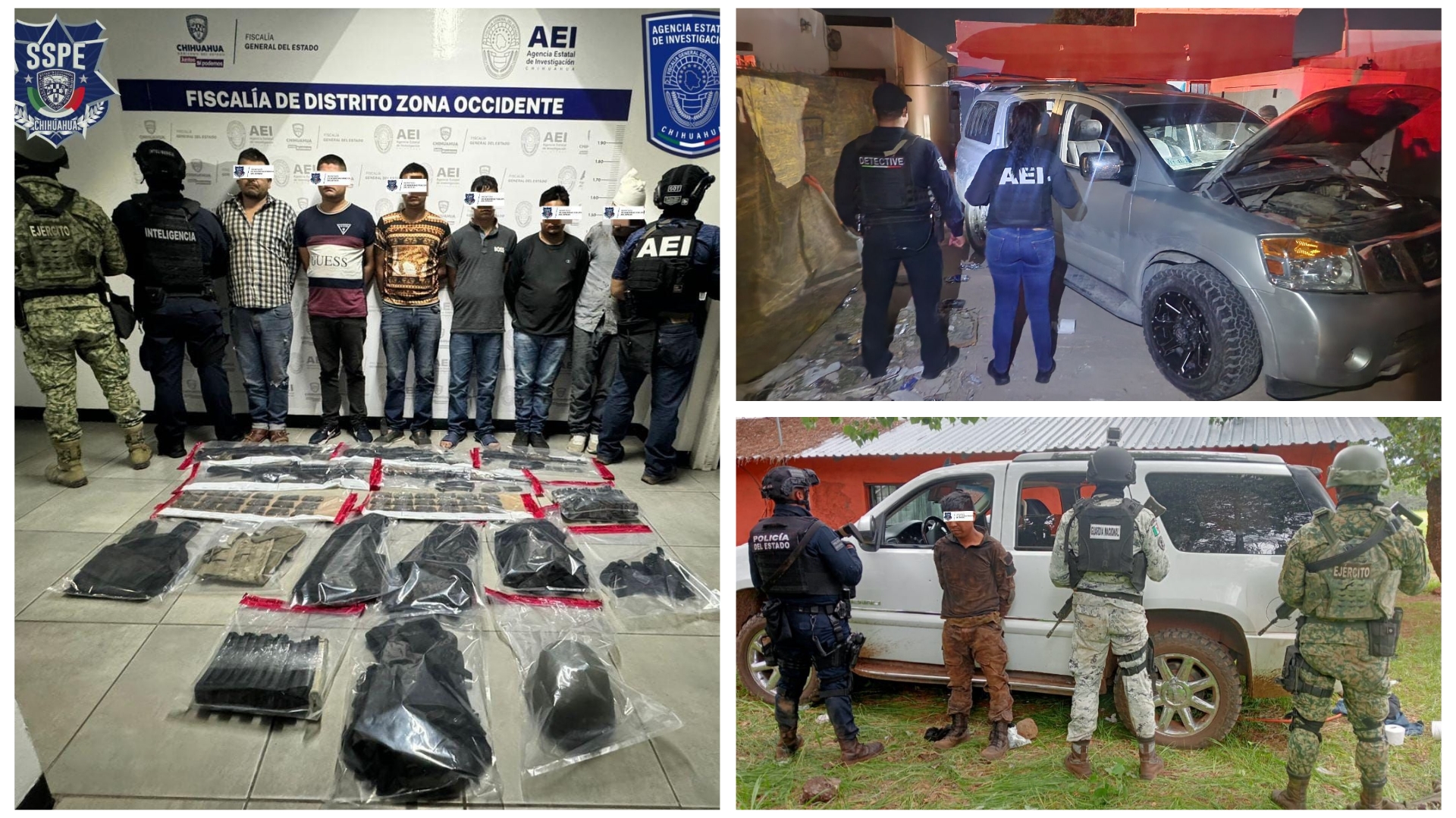 Además, el personal policial aseguró 4 armas de fuego cortas y 7 armas de alto poder, 43 cargadores y 1,062 municiones útiles, así como 5 chalecos y cascos tácticos.