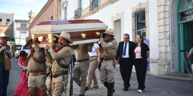 En el marco de las conmemoraciones por el aniversario luctuoso de Francisco Villa, el presidente municipal, Salvador Calderón, encabezó el cortejo fúnebre en honor al Centauro del Norte, acompañado por autoridades locales, representantes villistas y visitantes de distintos puntos del país.