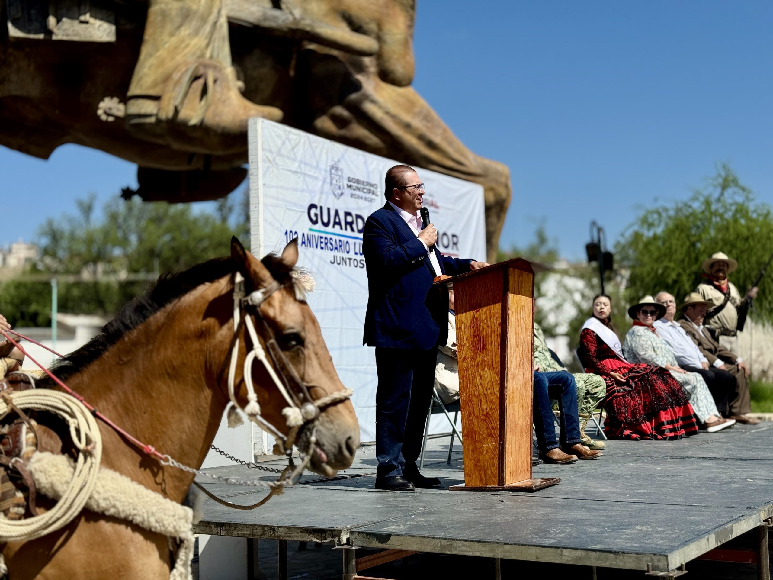 En un acto solemne y significativo, el presidente municipal, Salvador Calderón, encabezó la guardia de honor con motivo del 102º aniversario luctuoso del General Francisco Villa, figura clave en la historia de México y parte fundamental de las raíces de esta ciudad.