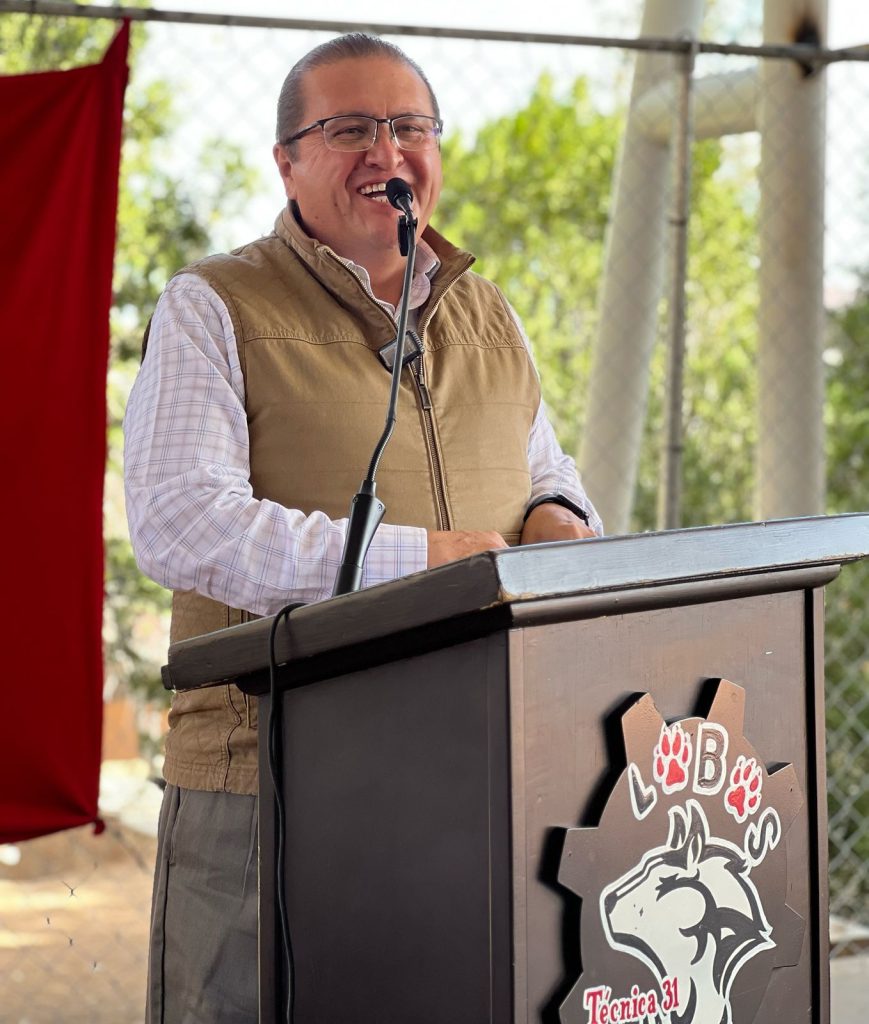 El presidente municipal de Parral, Chava Calderón, acompañado de la presidenta del DIF, Nora Carrillo de Calderón, presidió el acto de Honores a la Bandera en la Secundaria Técnica 31, en donde atendió las solicitudes de los alumnos respecto a la mejora de la institución educativa.