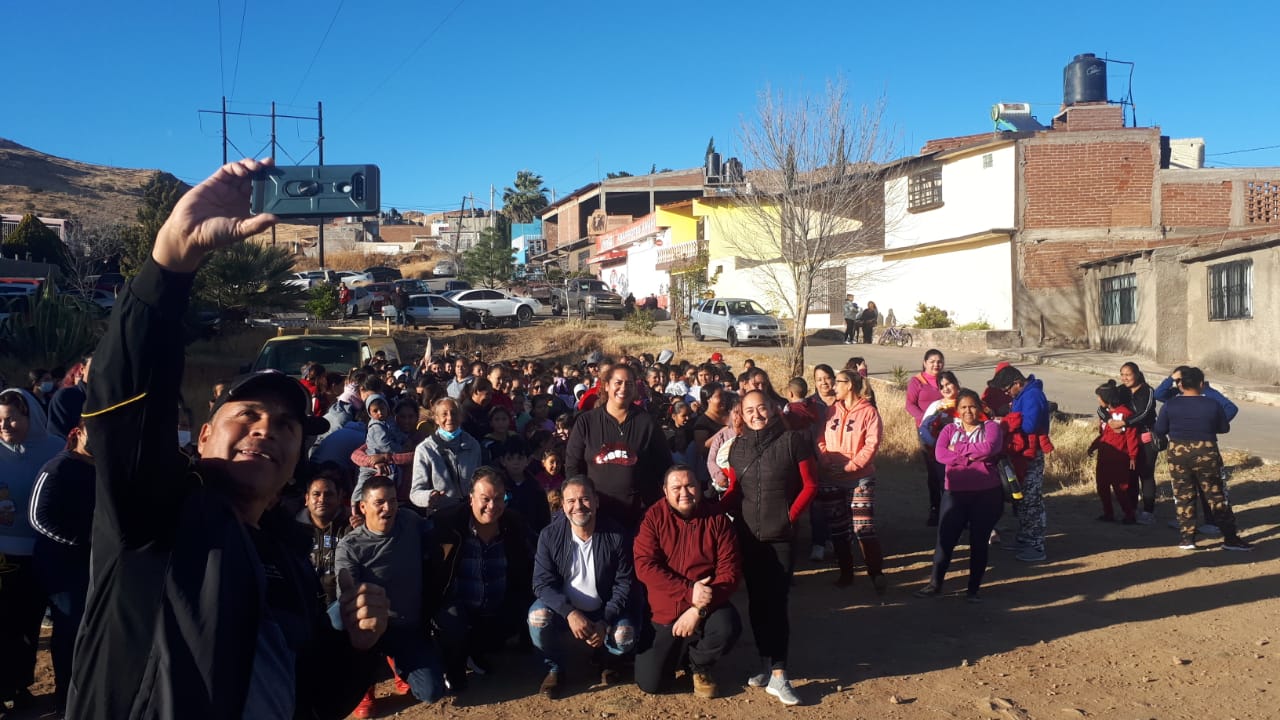 Alfredo “El Caballo” Lozoya, Sol Sánchez y Francisco Sánchez llevan regalos a colonias de Parral