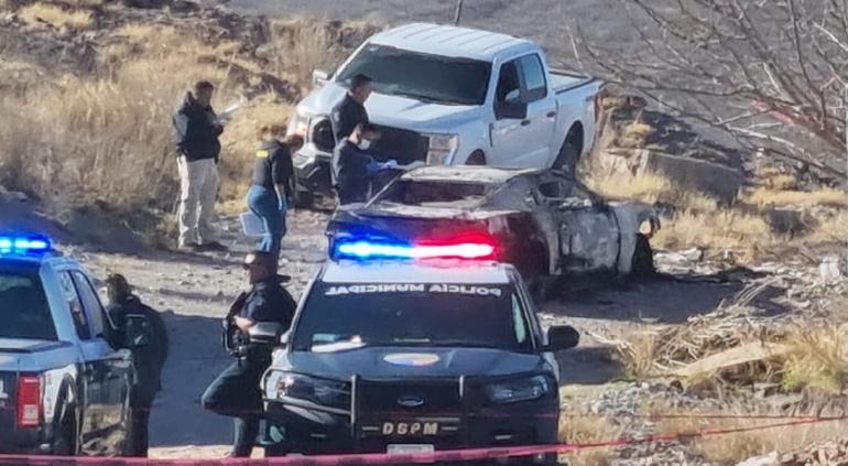 La mañana de este jueves, elementos policiacos localizaron un vehículo Chevrolet Camaro completamente calcinado en la colonia Valle de la Madrid, en la ciudad de Chihuahua. En su interior, se encontró el cuerpo de una persona, también calcinada, lo que ha generado un fuerte despliegue de seguridad en la zona.