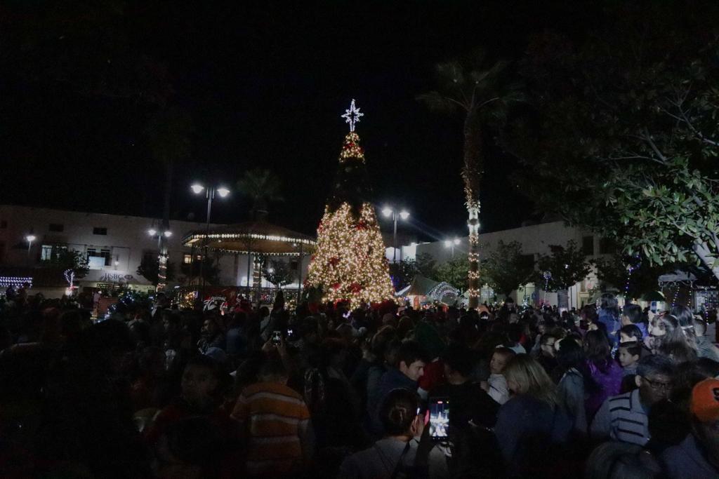 Todos a una voz entonaron la cuenta regresiva para el encendido del árbol, el cual se mostró tradicional y luminoso, rodeado por una villita navideña que los asistentes pudieron aprovechar para tomarse una fotografía en familia.