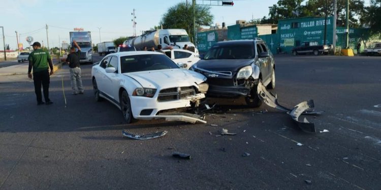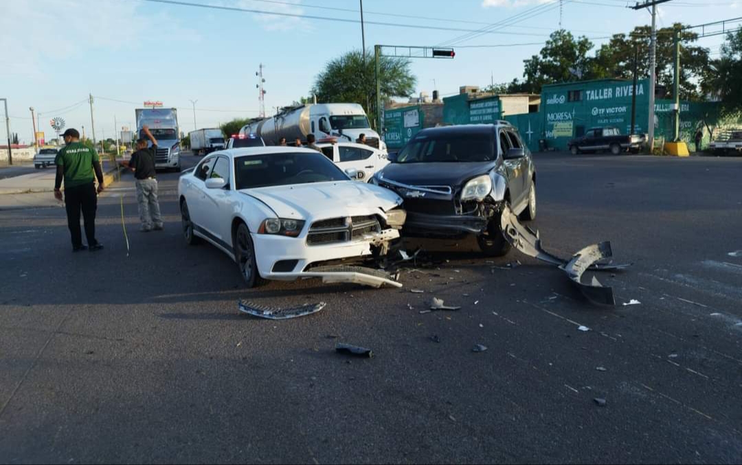 Las unidades involucradas fueron una tipo sub marca Chevrolet, y un Dodge Charger, ambos con a daños en la defensa y faros.