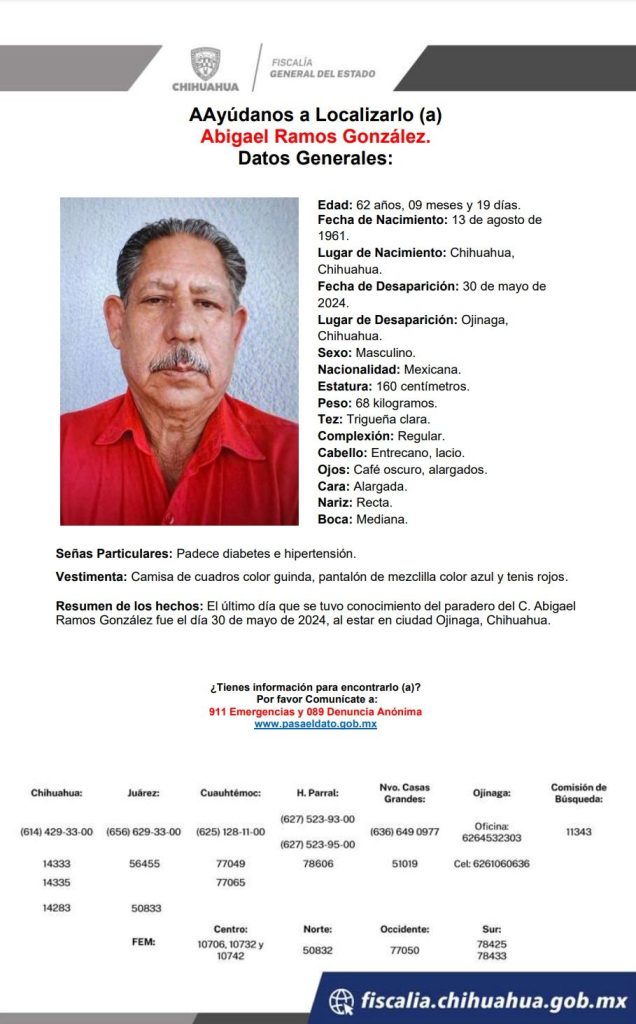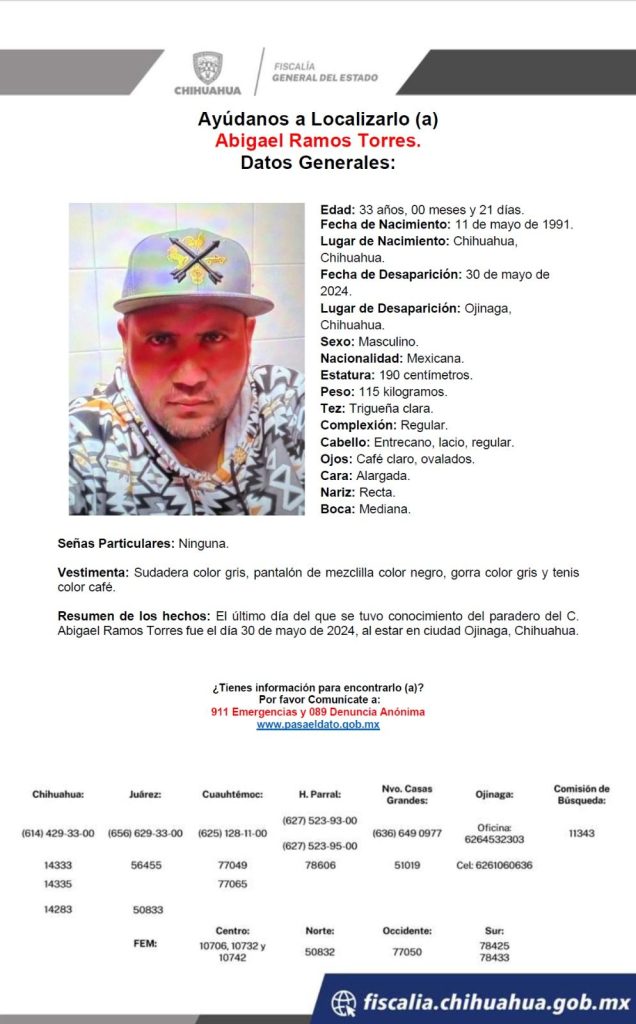 Las personas buscadas son conductores del servicio de transporte a través de plataforma digital que fueron reportados como desaparecidas el pasado viernes 31 de mayo, tras haber acudido al municipio de Ojinaga procedentes de esta ciudad de Chihuahua, en donde tienen sus domicilios.