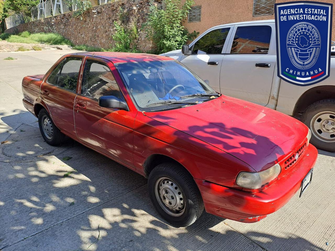 Elementos de la Agencia Estatal de Investigación (AEI) adscritos a la Fiscalía de Distrito Zona Sur, recuperaron un vehículo marca Nissan, línea Tsuru, modelo 2022, de color rojo que contaba con reporte de robo interpuesto el 16 de agosto del año en curso en la ciudad de Parral.