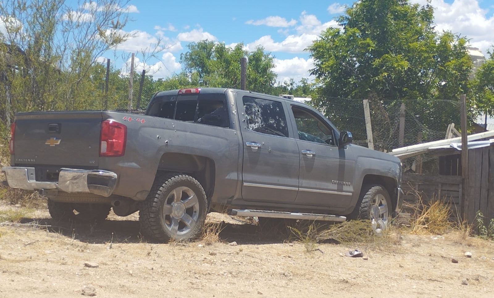 Agentes estatales atendieron el reporte y encontraron una Chevrolet Cheyenne LTZ color gris, 4 puertas, con visibles daños por proyectil de arma de fuego, así como rastros hemáticos.