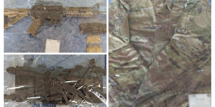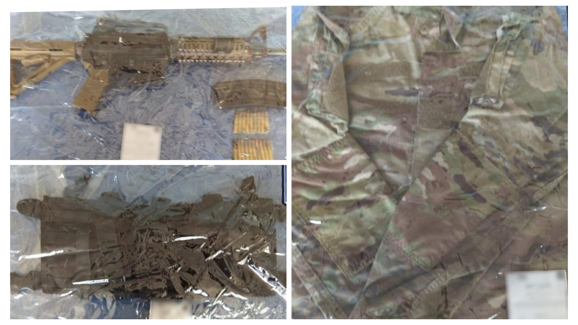 Durante el recorrido que efectuaban para la disuasión de los delitos, localizaron en un lugar despoblado: 01 fusil marca Smith&Wesson, calibre .223; 01 fusil sin marca, calibre 7.62×39, ambos abastecidos con 30 cartuchos; 01 porta cargadores de color negro y una camisola táctica, con patrones de camuflaje en color verde.