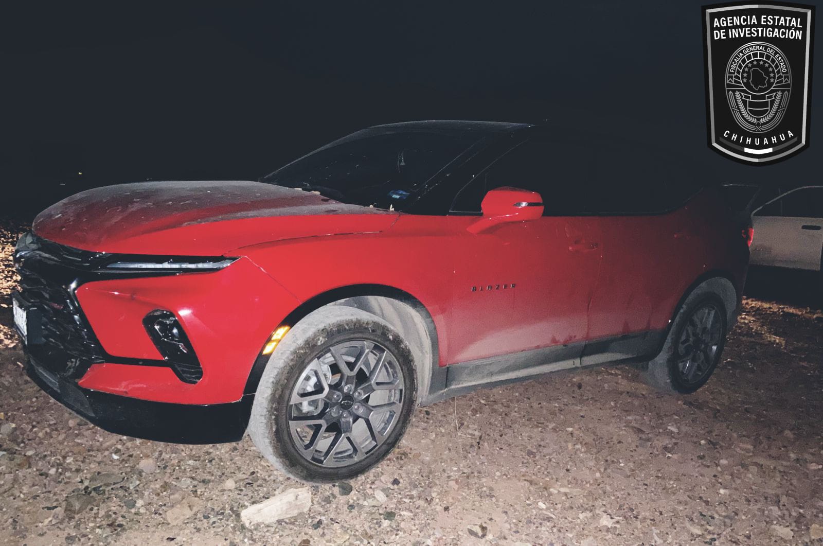 Elementos de la Agencia Estatal de Investigación (AEI) adscritos a la Fiscalía de Distrito Zona Sur, recuperaron una camioneta de la marca Chevrolet, línea Blazer, modelo 2023, color rojo, que contaba con reporte de robo en la ciudad de Chihuahua.