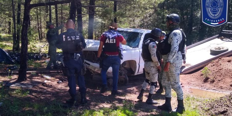 En las acciones de seguridad que se llevan a cabo en el municipio de Guachochi, fue localizada en la comunidad denominada Gentiles, una pick up de la marca Chevrolet, modelo 2006, parcialmente desmantelada que resultó con reporte de robo,