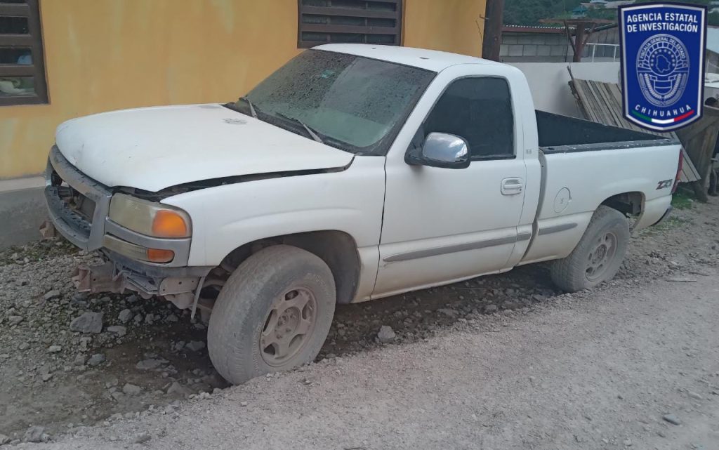 La primera unidad asegurada es una pick up, marca General Motors, línea 1500, modelo 1999, de color blanco, la cual se localizó abandonada en la localidad de Mesa de San Rafael, municipio de Guadalupe y Calvo, y contaba con reporte de robo interpuesto el día 02 de octubre de 2020 en la comunidad de Santa Rosa, en el referido municipio.