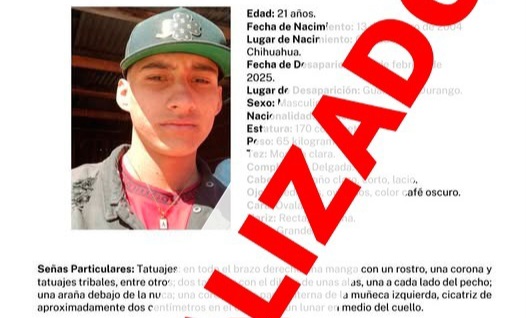 Como resultado de los trabajos permanentes de búsqueda y localización de personas, la Fiscalía de Distrito Zona Sur localizó sano y salvo a Jorge Jahir E. G., joven de 21 años de edad, que contaba con reporte de desaparición interpuesto el 13 de febrero del presente año, en la ciudad de Parral.