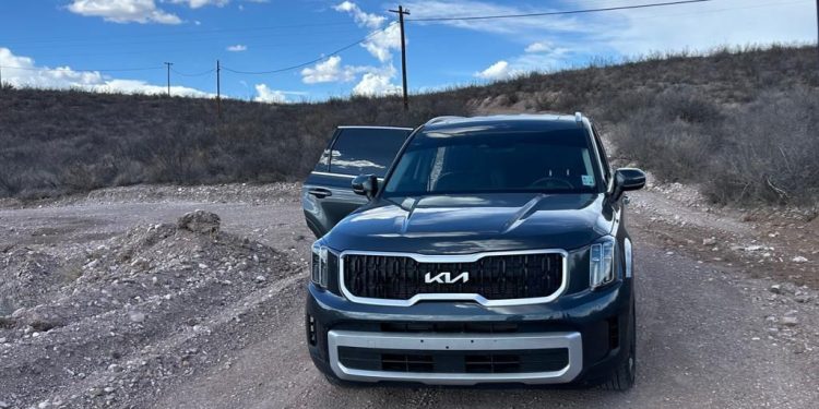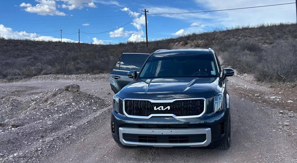 Los agentes que realizan acciones para el combate y prevención de los delitos, localizaron un vehículo de la marca Kia, línea Telluride, modelo 2023, color gris, abandonado en un brecha conocida como Las Antenas que conecta con la carretera que conduce de Satevó a Delicias.