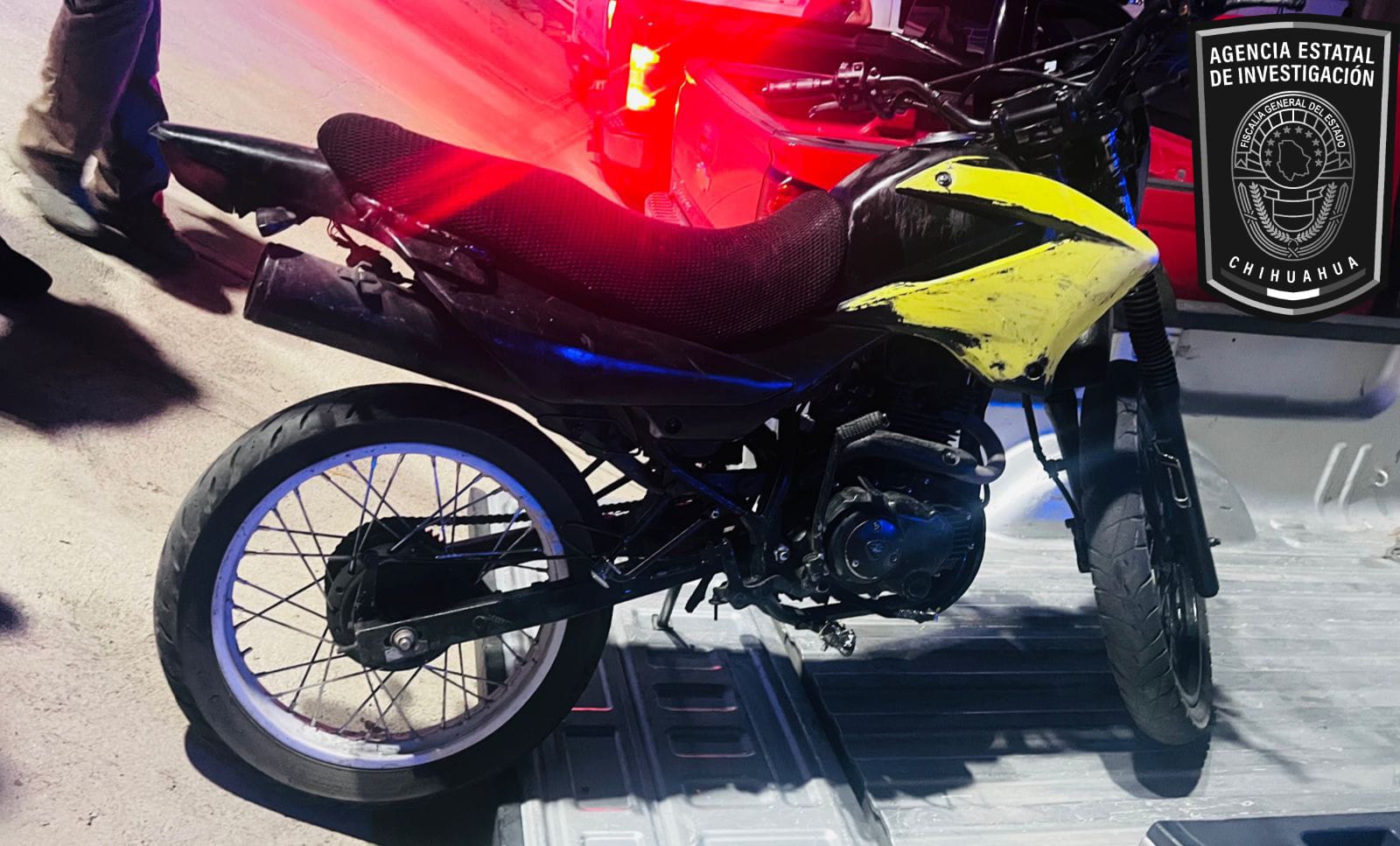 Elementos de la Agencia Estatal de Investigación (AEI) adscritos a la Fiscalía de Distrito Zona Sur, recuperaron una motocicleta marca Italika, línea DM200, de color negro con amarillo, que contaba con reporte de robo en la ciudad de Parral.