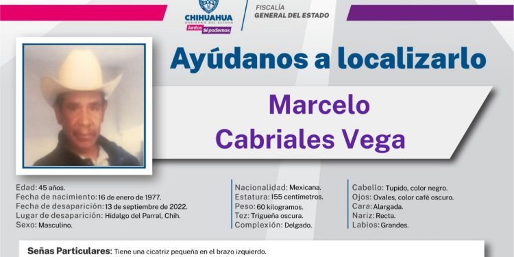 Marcelo Cabriales Vega de 45 años de edad, desapareció desde el pasado martes cuando salió de su domicilio, y la noche del jueves fue encontrado sin vida cerca del Fraccionamiento Montañas.