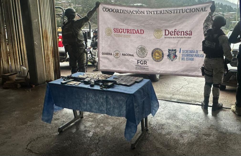 En Operativo de la Célula BOI efectuado hoy sábado en Guadalupe y Calvo, se ubicó un punto de halconeo en la parte alta de un cerro y entre la maleza encontraron un arma de fuego tipo fusil, cargadores y cientos de municiones.