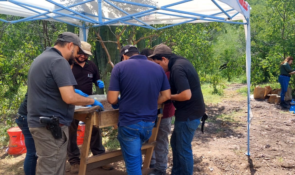 Previamente, el día 21 de agosto del 2024, cuando se realizó la primera intervención, se encontraron mediante proceso de cribación, diversos fragmentos de hueso, así como un casquillo percutido, dos ojivas, remaches metálicos y 11 botones metálicos.