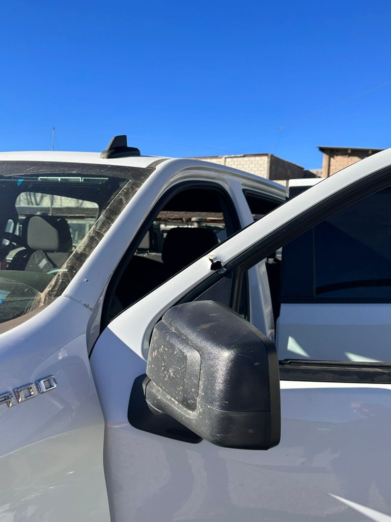 Fue asegurado un vehículo Nissan, Frontier de color blanco, sin reporte de robo, con placas sobrepuestas del estado de Nuevo León y se embalaron aproximadamente 50 cartuchos percutidos calibres .223 y 9 mm.