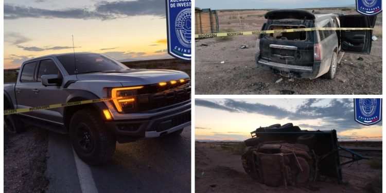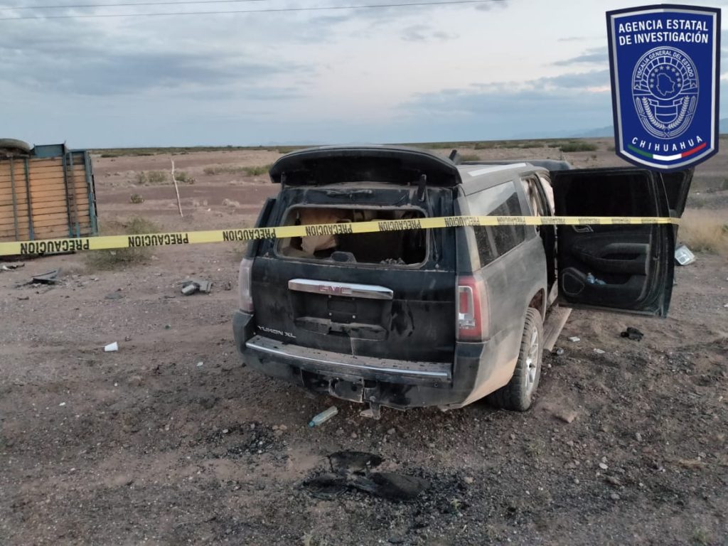 En colaboración con autoridades municipales, elementos de la Agencia Estatal de Investigación adscritos a la Fiscalía de Distrito Zona Noroeste, localizaron y aseguraron en Puerto Palomas de Villa, municipio de Ascensión, vehículos que presentaban daños por colisión e impactos de proyectil de arma de fuego.