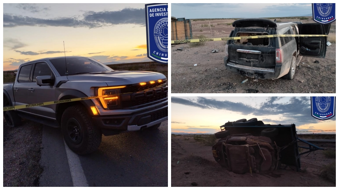 En colaboración con autoridades municipales, elementos de la Agencia Estatal de Investigación adscritos a la Fiscalía de Distrito Zona Noroeste, localizaron y aseguraron en Puerto Palomas de Villa, municipio de Ascensión, vehículos que presentaban daños por colisión e impactos de proyectil de arma de fuego.