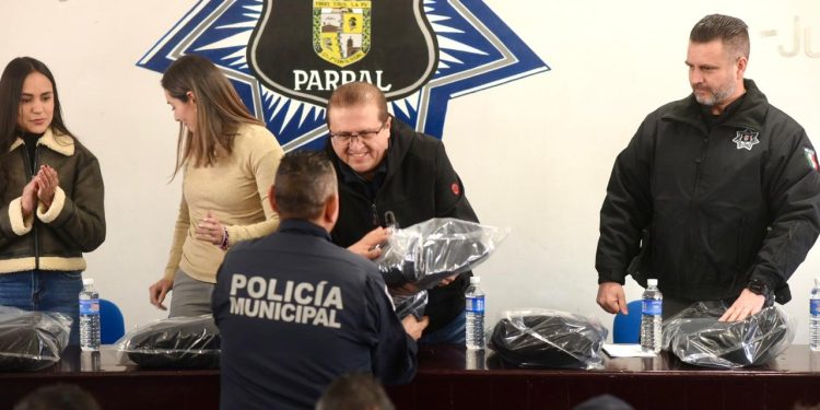 El presidente municipal, Chava Calderón, hizo entrega de 123 chamarras a elementos de la Dirección de Seguridad Pública de Parral (DSPM), como parte del compromiso de equipar a quienes, con su espíritu de servicio, se encargan de garantizar la seguridad de las y los parralenses.