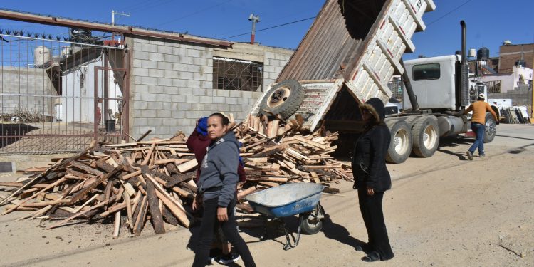 Luego del corte del listón inaugural de la calle Guadalupe y Calvo, tres camiones repletos de leña realizaron la descarga del combustible del programa Invierno sin Frío en tres puntos diferentes para facilitar el acopio de los vecinos.