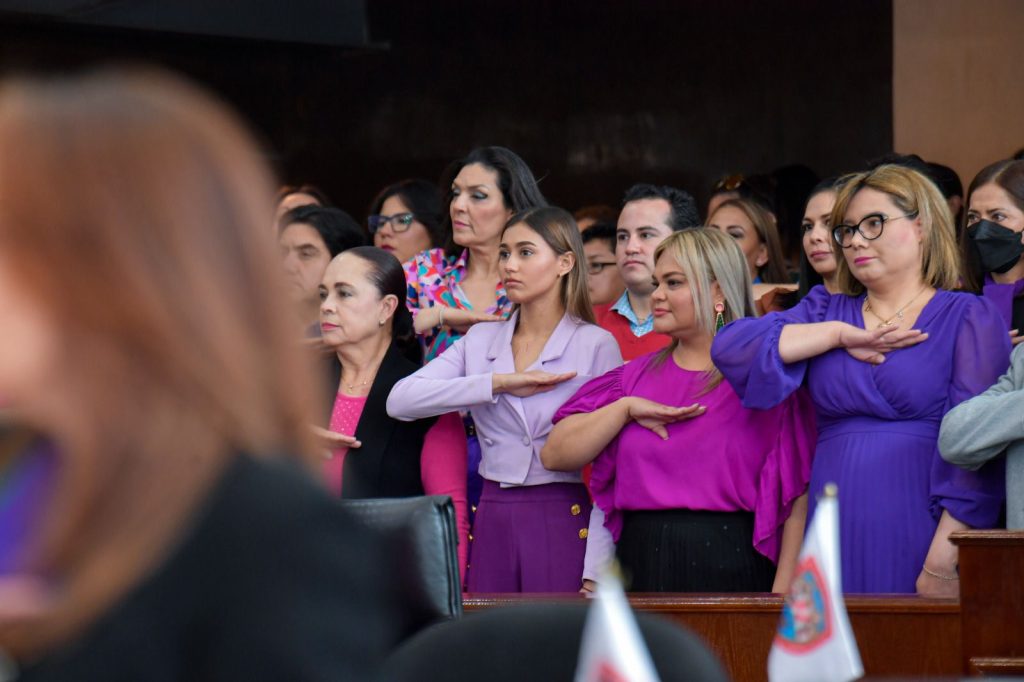 Resaltó la presencia en el recinto de la activista Diva Gastélum; de la joven Mya Naomi y su madre Lluvia Saldaña, a quienes reiteró su compromiso y apoyo.