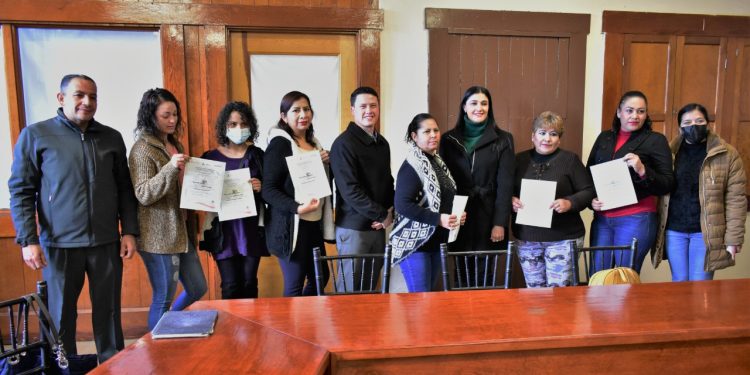 Acto seguido, en la sala de Turismo de mina La Prieta, las autoridades en mención procedieron a la entrega de las constancias para las comprometidas participantes que en breve habrán de complementar su capacitación que les permitirá conformar la cooperativa que dará vida a un taller de costura en Parral.