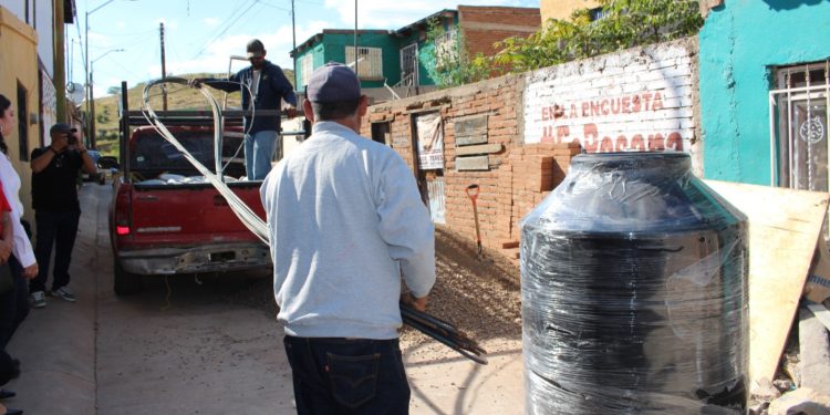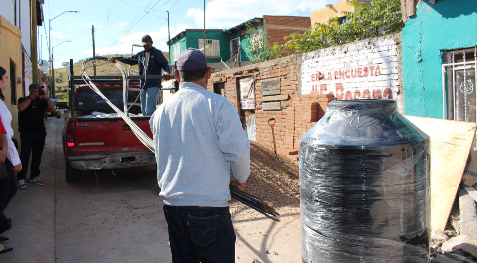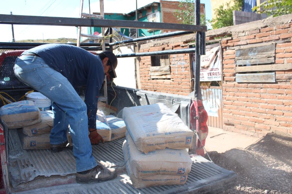 Resaltó que se implementaron acciones para el retiro de escombro, y en esta ocasión, se entregaron 10 sacos de cemento, varillas, polines para sujetar el techo, un tinaco y arena.
