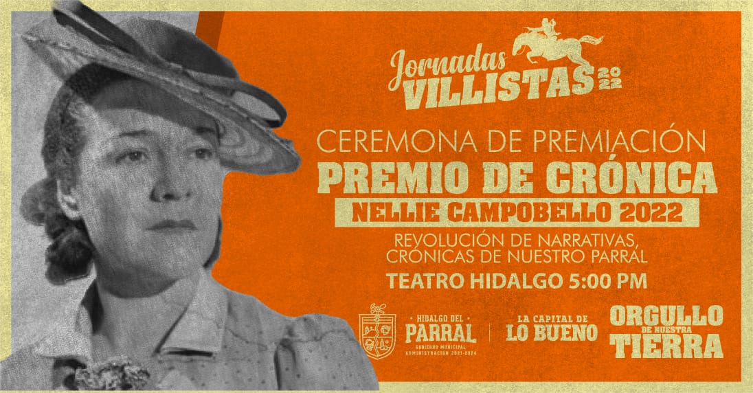 Casi para concluir las actividades culturales de las Jornadas Villistas, hoy a las 5:00 de la tarde se estará entregando la primera edición del premio “Nellie Campobello 2022” a la mejor crónica escrita sobre Parral, en las instalaciones del monumental Teatro Hidalgo.