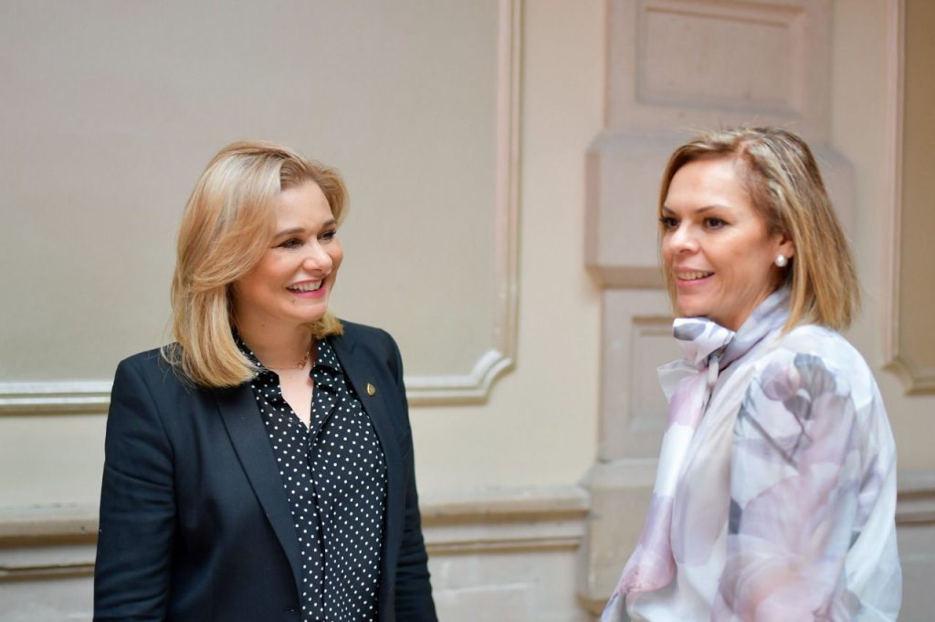 La gobernadora estuvo acompañada por el secretario de Hacienda, José de Jesús Granillo, y por la titular de la Secretaría de Innovación y Desarrollo Económico, María Angélica Granados.