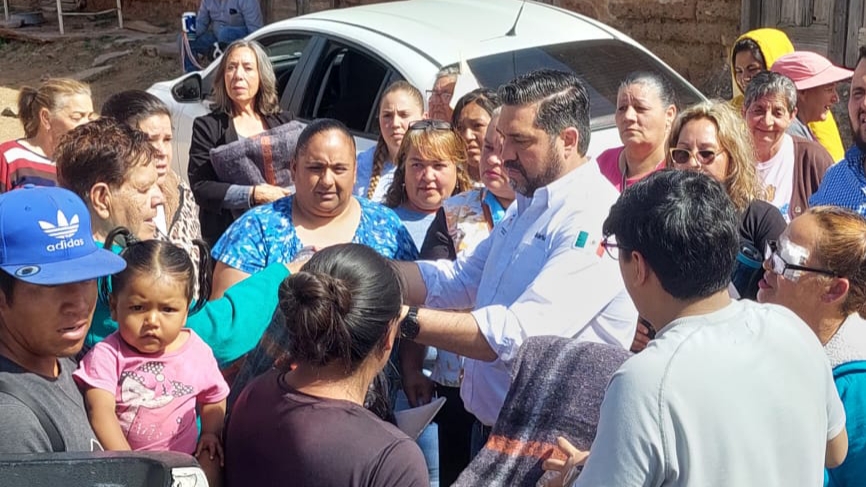 Piñón Domínguez atendió a los pobladores en la plaza central en continuidad a la serie de precorridos que ha encabezado por la región sur para brindar apoyos a familias en rezago y escuchar las peticiones más apremiantes.