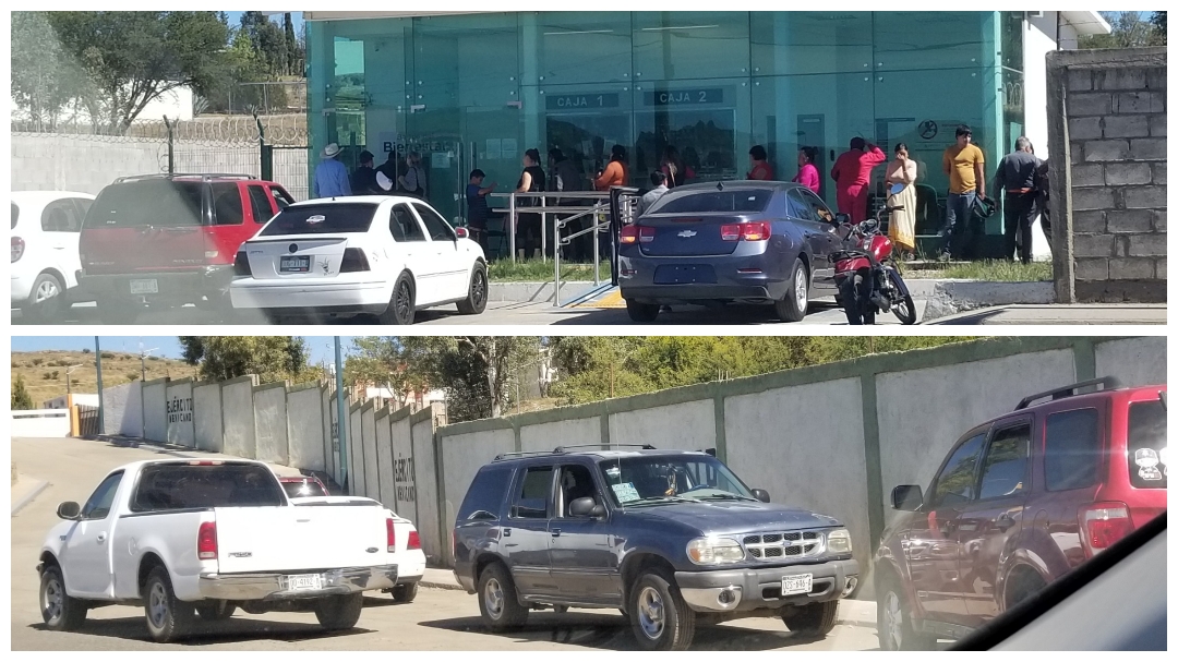 Tras el anuncio de la disponibilidad del recurso, grandes filas se formaron en el Banco del Bienestar ubicado en el 76 Batallón de Infantería, frente al acceso a la colonia Tierra y Libertad, incluso, quienes acuden en automóvil particular a retirar su dinero, se estacionaron sobre uno de los carriles de circulación, con el consiguiente riesgo de generar un accidente.