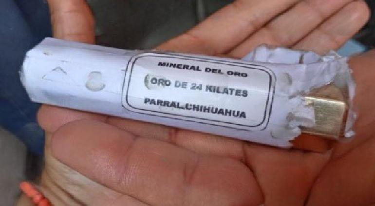 Luego de entregar sus ahorros, recibió barras de metal pintadas de color dorado con la leyenda «Mineral del Oro de 24 kilates, Parral, Chihuahua».