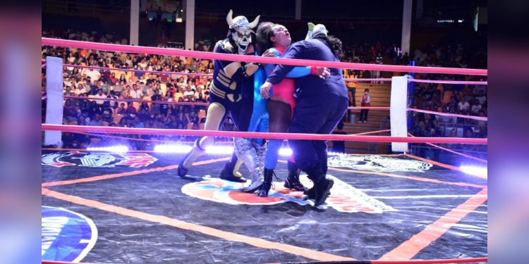 De principio a fin, el Foro Villista de Parral se convirtió en un espacio de sana diversión donde el carisma de los grandes gladiadores del ring cautivaron al público que ovacionó tanto a técnicos como a rudos en una gran velada al estilo de la triple AAA.