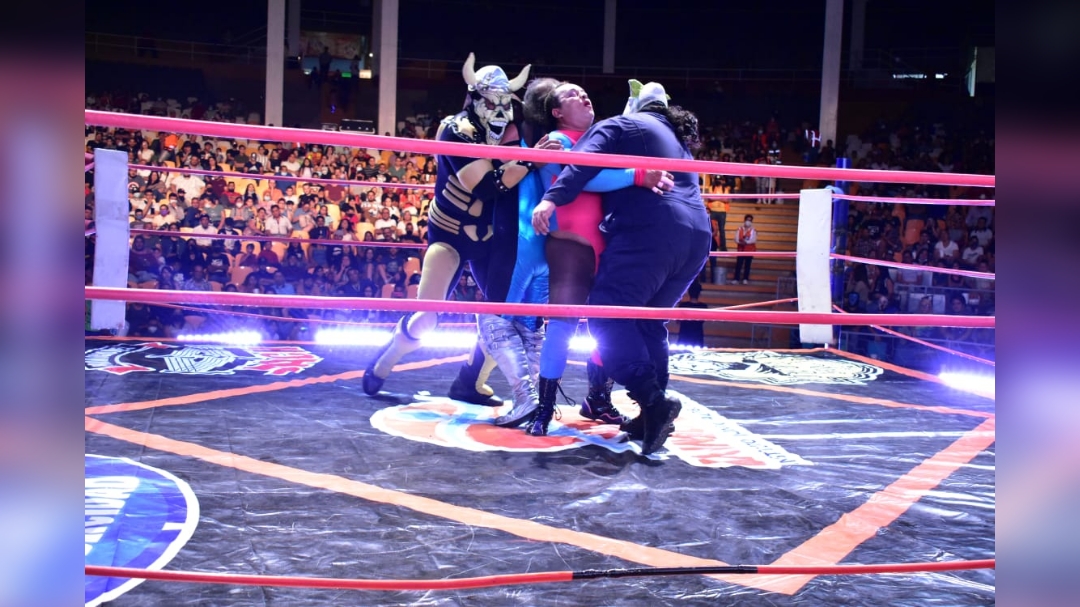 De principio a fin, el Foro Villista de Parral se convirtió en un espacio de sana diversión donde el carisma de los grandes gladiadores del ring cautivaron al público que ovacionó tanto a técnicos como a rudos en una gran velada al estilo de la triple AAA.