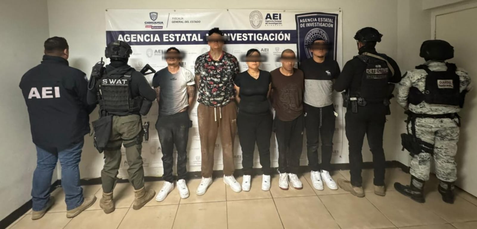 Elementos de la Agencia Estatal de Investigación, adscritos a la Unidad Especializada en la Investigación de Delitos contra la Vida, cumplimentaron este sábado una orden de cateo en Infonavit Casas Grandes, lo que derivó en la captura de cinco hombres y una mujer.