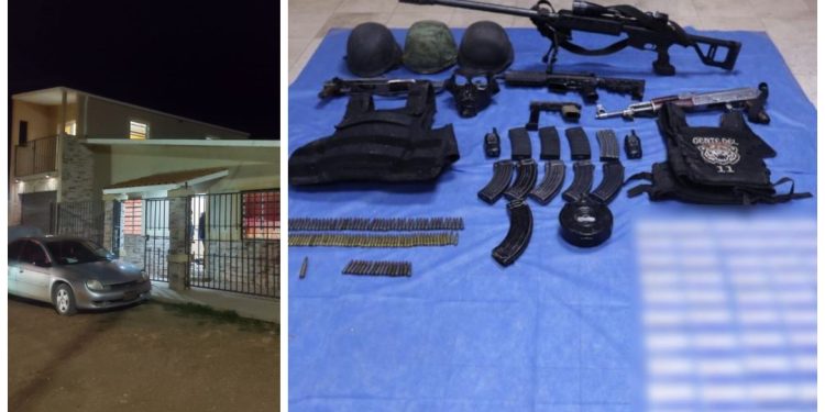 Elementos de la Agencia Estatal de Investigación y la Fiscalía de Distrito Zona Occidente, aseguraron armas de grueso calibre, vehículos y parque en un domicilio de la colonia Industrial durante un cateo en el que los agentes fueron recibidos a tiros, siendo abatido un sujeto y dos más detenidos al repeler la agresión.