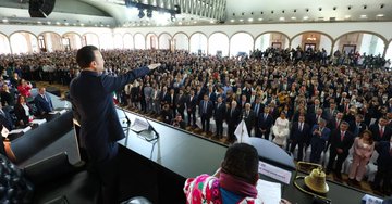 “Venimos a acompañar a Esteban Villegas a este primer gobierno de coalición, que tiene el reto enorme de demostrarle a México que sí se pueden cumplir acuerdos, que la palabra se honra y que se puede gobernar dándole resultados a la gente”, dijo Marko Cortés, dirigente del Partido Acción Nacional (PAN) en el evento.