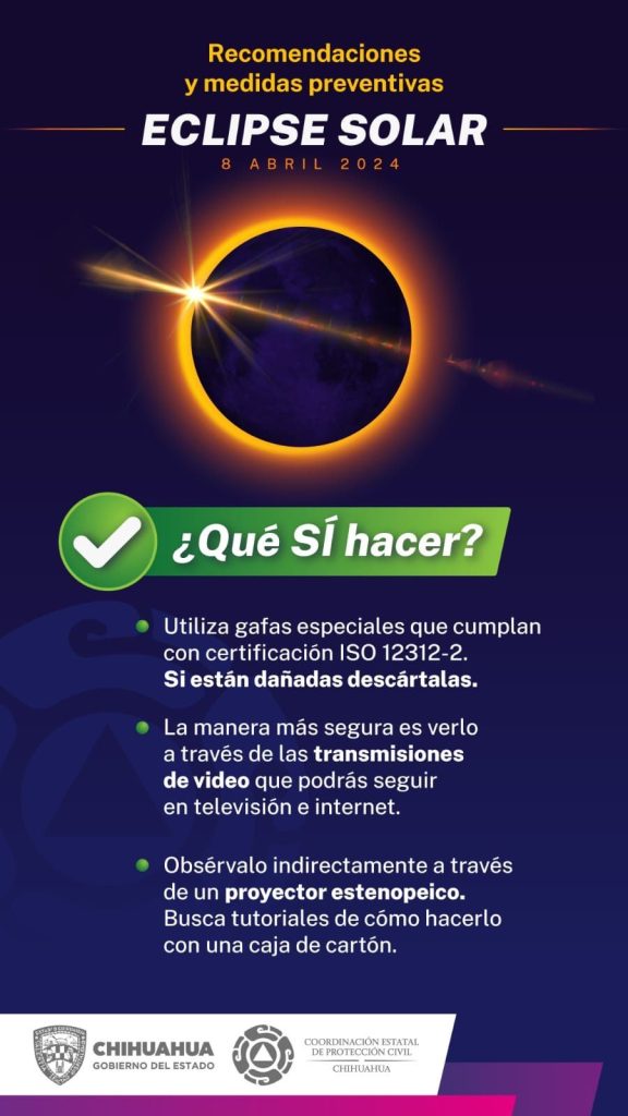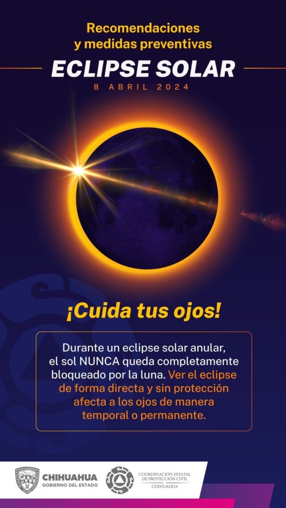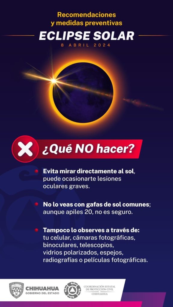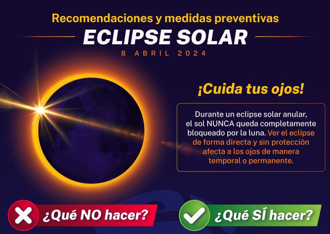 –Para evitar daños irreversibles en la visión, se exhorta a no mirar directamente el fenómeno astronómico si no se cuenta con objetos o equipo certificado