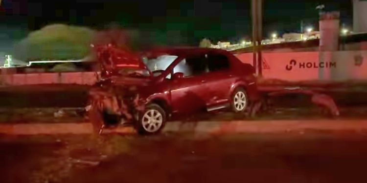 La noche del domingo, el conductor de un Nissan Tida perdió el control del mismo al tomar una curva sobre la avenida Niños Héroes y terminó destrozándolo.