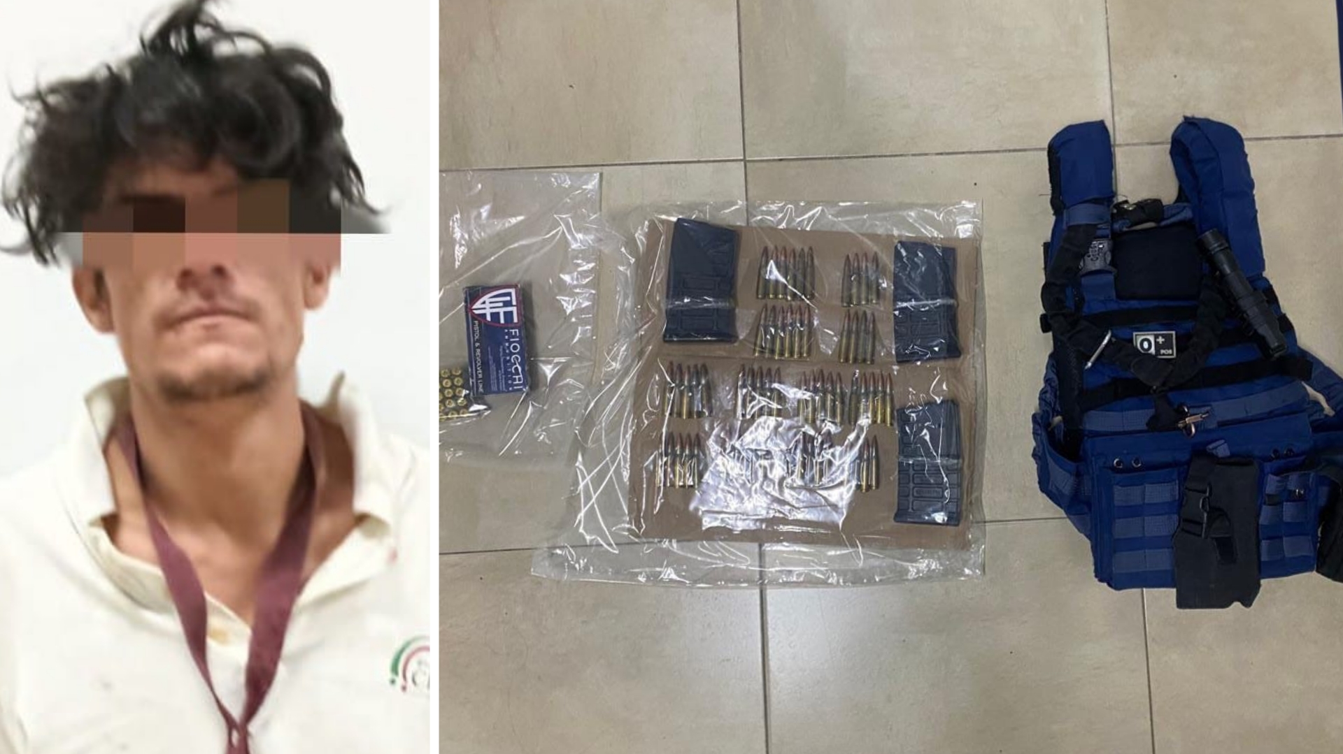 El presunto, de nombre Adrián M. V., fue detenido anoche en calles de la colonia Tierra y Libertad, momentos después de que rompiera el cristal lateral de un vehículo oficial, del que sustrajo equipo táctico, cargadores y cartuchos.