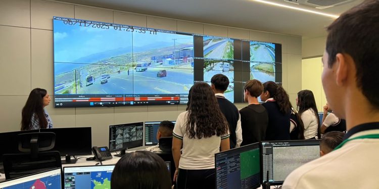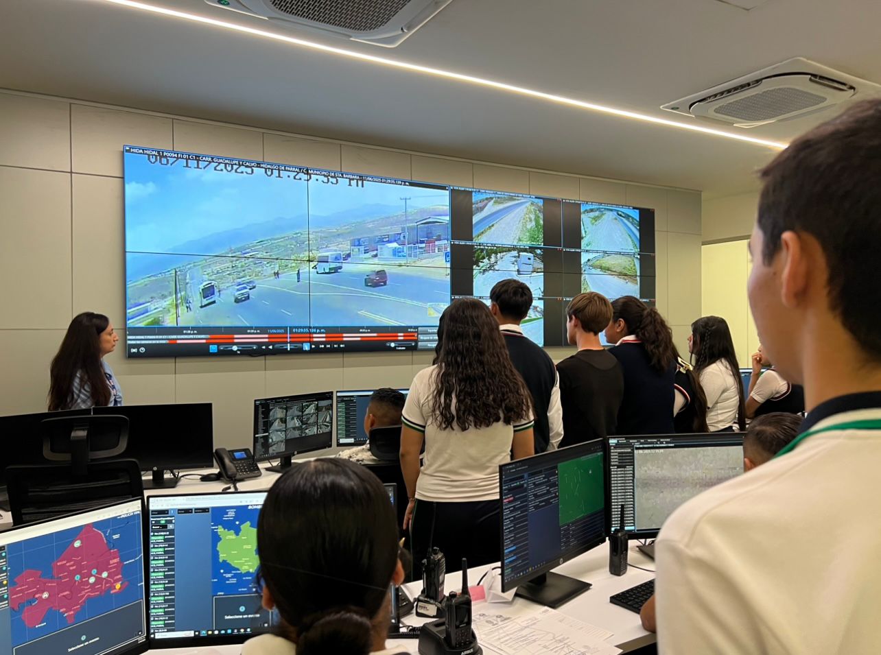 Durante el recorrido, los estudiantes pudieron conocer de cerca las estrategias y herramientas tecnológicas utilizadas en el Subcentro Centinela, así como los procesos operativos que permiten a las autoridades brindar resultados eficientes y garantizar la seguridad de la población.
