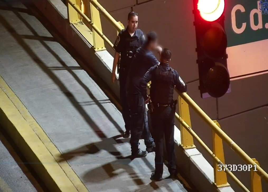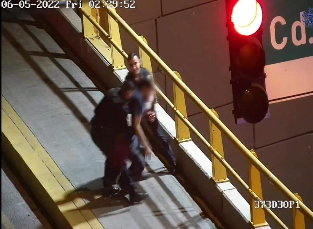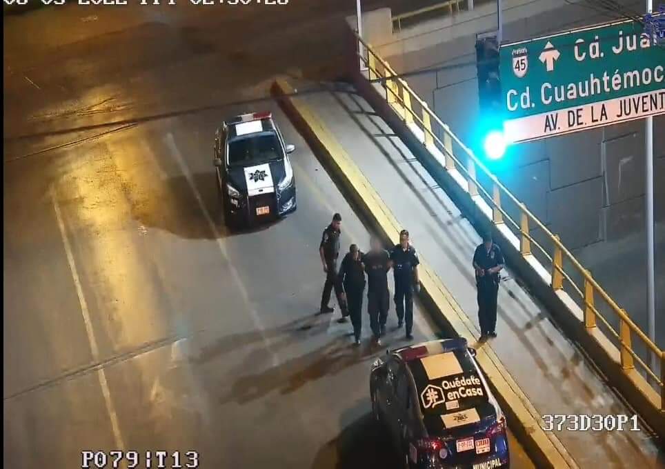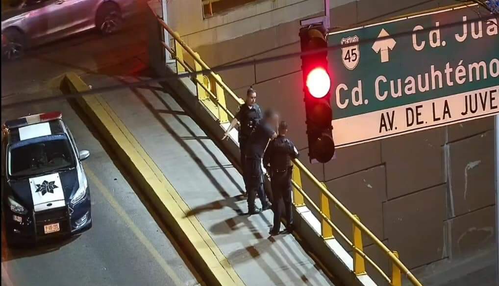 Ambos agentes de Seguridad Pública se comunicaban entre señas mientras el hombre les contaba su situación, y en un acto de reacción inmediata, ambos policías lograron asegurar a la persona de manera exitosa.