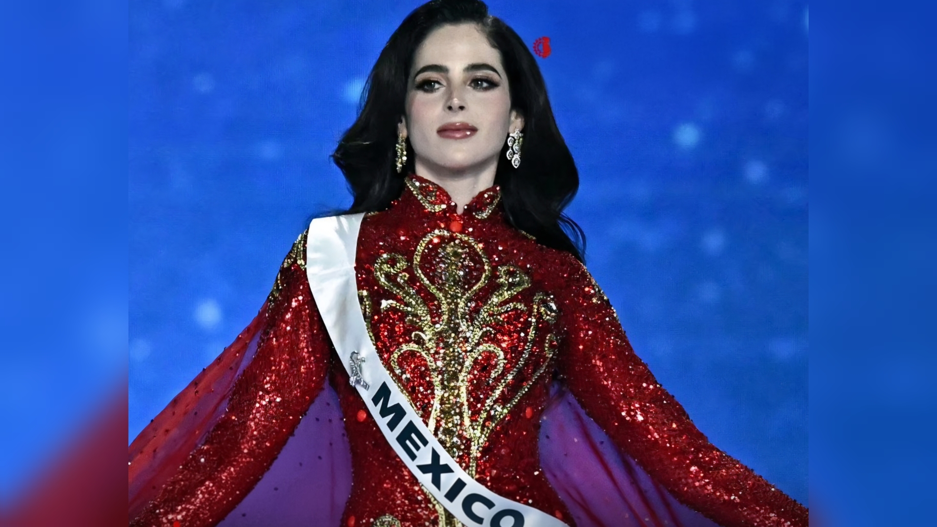 En la segunda etapa del certamen la mexicana utilizó un vestido de color rojo con arreglos en dorado.