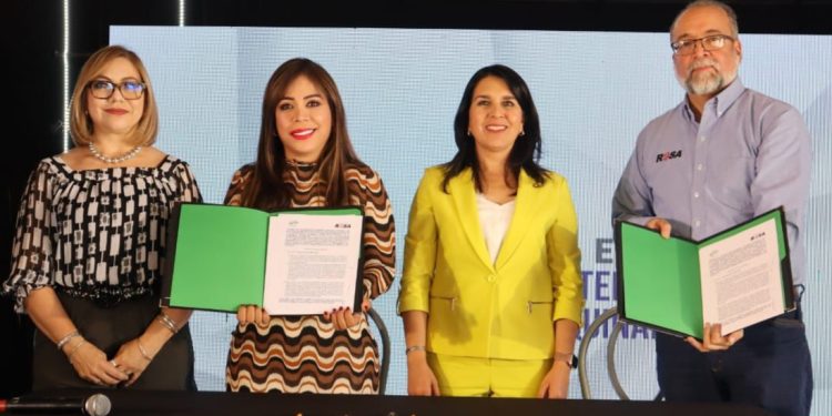 En la firma del documento que oficializa la colaboración entre la UTP, el Clúster de Automatización e Integración de Chihuahua y Grupo Rosa, fungió como testigo de honor la presidenta de la Cámara Nacional de la Industria de la Transfomración (Canacintra) en Parral, Vannia Reyes.