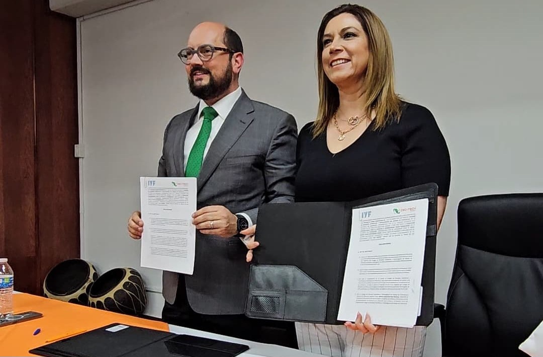 La directora general del CECyTECH, Adriana Ruiz Ramírez, y el director de IYF México, Miguel Primo Armendáriz, formalizaron el acuerdo que contempla una capacitación de alto impacto a maestras y maestros, así como el desarrollo de mecanismos de asistencia, servicios y cooperación mutua que acompañen los proyectos educativos, a impulsar en el proceso de transformación institucional.