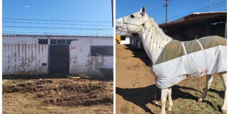 Elementos de la Agencia Estatal de Investigación y agentes del Ministerio Público de la Fiscalía de Distrito Zona Norte, cumplimentaron una orden de cateo en las instalaciones del lienzo charro «Adolfo López Mateos», donde se aseguraron dos yeguas, como parte de una diligencia ministerial por el delito de maltrato animal.