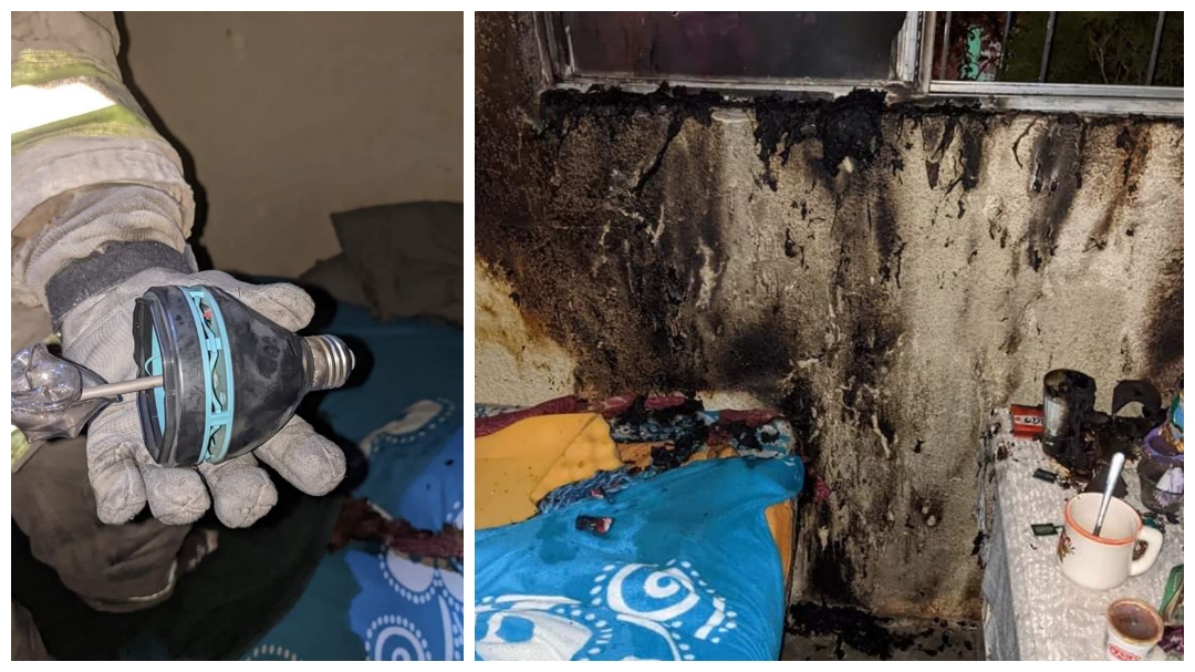 La causa aparente fue un corto circuito de un foco inteligente, el cual se propagó hacia una base de cama de madera y un colchón, un buró y las ventanas de la habitación.