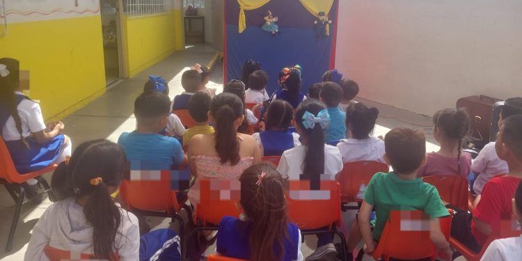 La Dirección de Seguridad Pública Municipal (DSPM), a través de la Unidad de Programas Preventivos, llevó a cabo una actividad lúdico-educativa en el preescolar Independencia, con la finalidad de promover un entorno seguro mediante la obra de teatro guiñol titulada “Los Derechos y Obligaciones de las Niñas y Niños”.